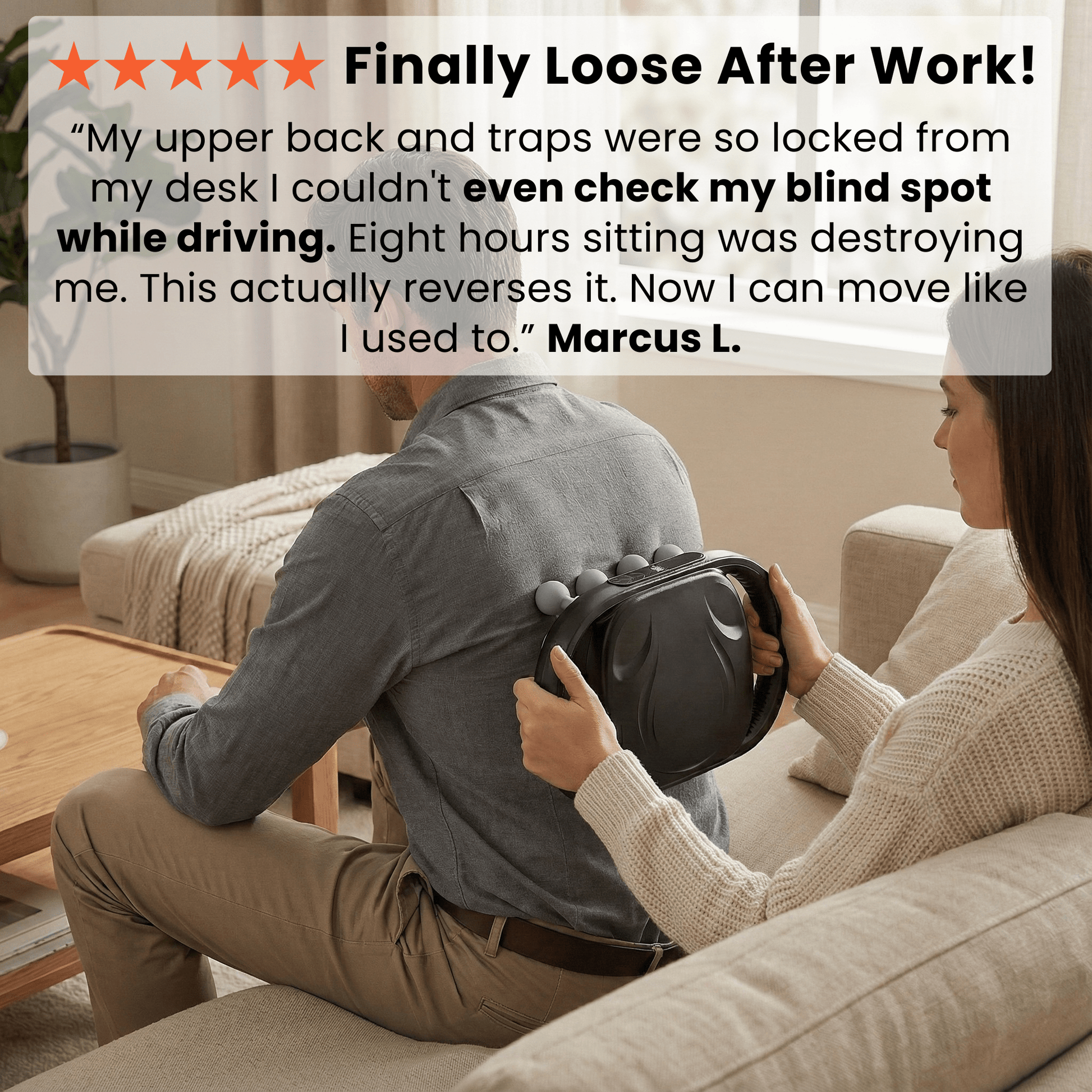 Most people just lean back on it while sitting on the couch or in a chair. The wide 16-head design works on your upper back and shoulders at once with almost no effort, but it's also good to have someone using it on you if you need to target spots you wouldn't reach by yourself, or would require uncomfortable positions.