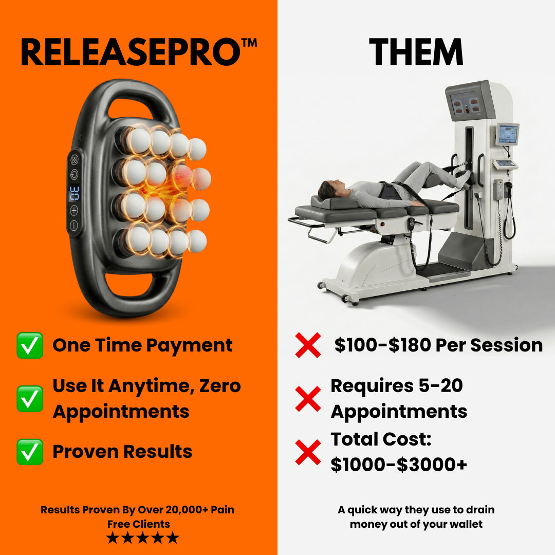 ReleasePro™ is specefically designed to target the root issue of the pain, it covers every stiff spot at once, combined with red light therapy, it delivers a deep tissue massage to loosen up all that tight fascia.